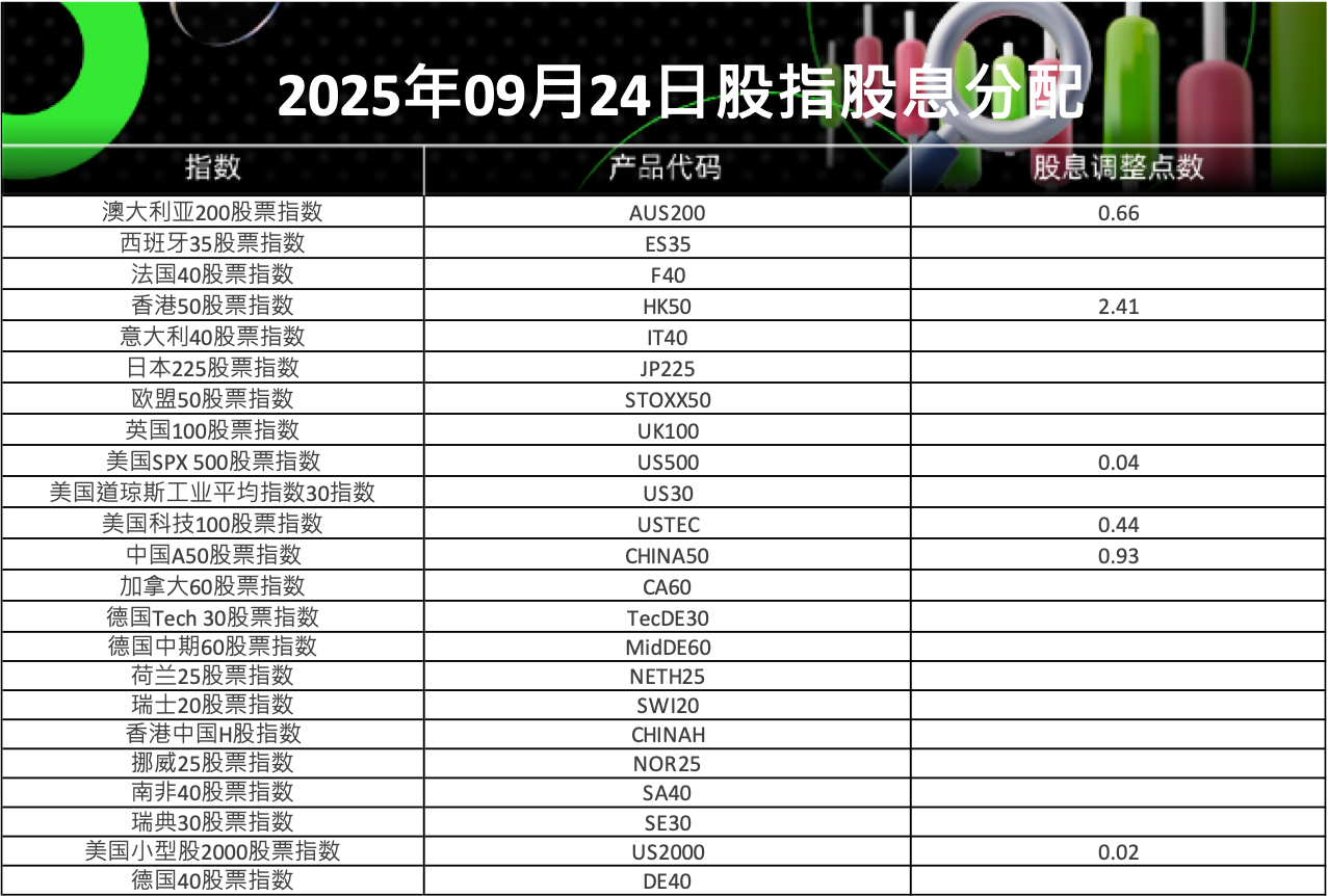 24 Sep 2025 2025年09月股指股息分配表 (2025-09-24) Chloe Lai No Comments 亲爱的客户您好, 请查阅我们更新的2025年09月24日股指股息分配表。 以下所有时间均为平台时间(GMT+3) IC Markets Global 中文团队 中文官网: https://ic-asia-official.com Email: support.cn@icmarkets-cs.com 微博:@IC小帮手