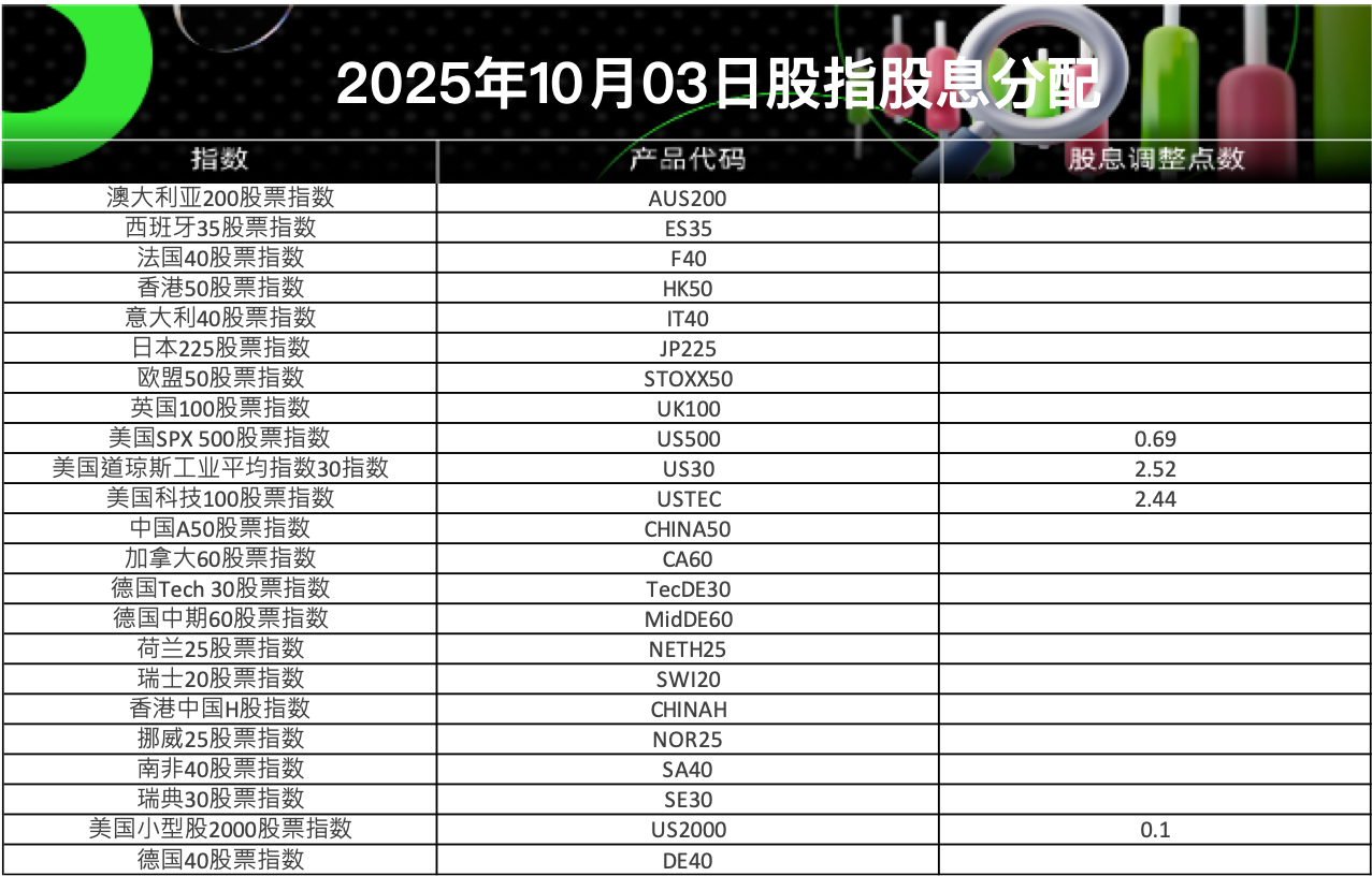 请查阅我们更新的2025年10月03日股指股息分配表。