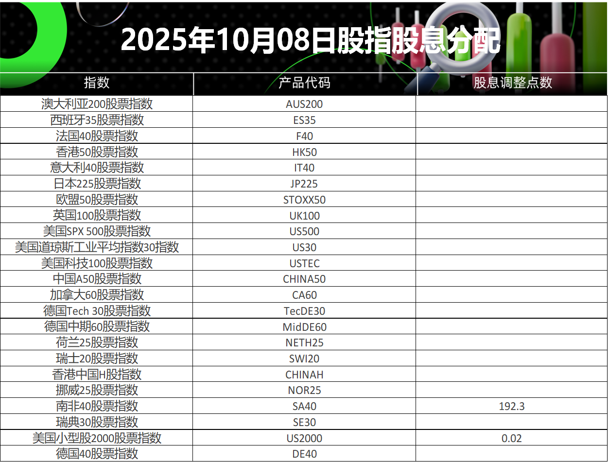 请查阅我们更新的2025年10月08日股指股息分配表。