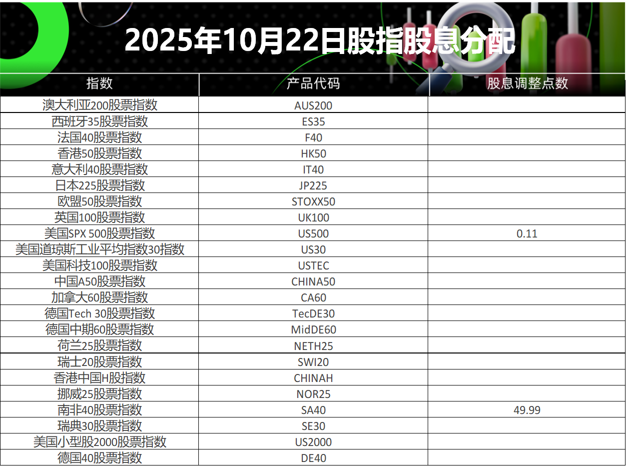 请查阅我们更新的2025年10月22日股指股息分配表。