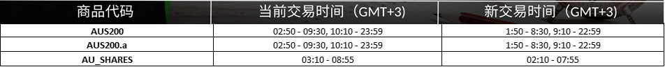 2025年10月5日交易时间更新(澳大利亚冬令时结束)