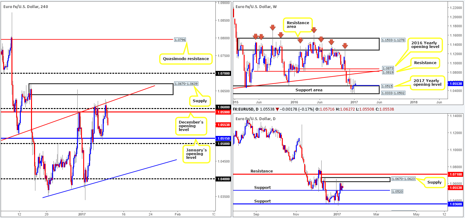 • Buys: 1.05/1.0515 ([lower-timeframe confirmation is required here before our team will consider pulling the trigger] stop loss: depends on where one confirms the zone).